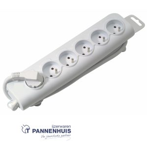 • Stekkerdoos, 4 stopcontacten met penaarde (type E), kabel 5 m, 3G1.5, wit
