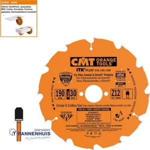• CMT Cirkelzaag extreem HW 190x30x2,2 Z12 Sidings, Cementvezel, GipsplaatCMT Cirkelzaag extreem HW 190x30x2,2 Z12 Sidings, Cementvezel, Gipsplaat Snelle weergave