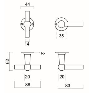 • Deurkruk pro PETRA NM T+L ROEST ROND R+E CYL
