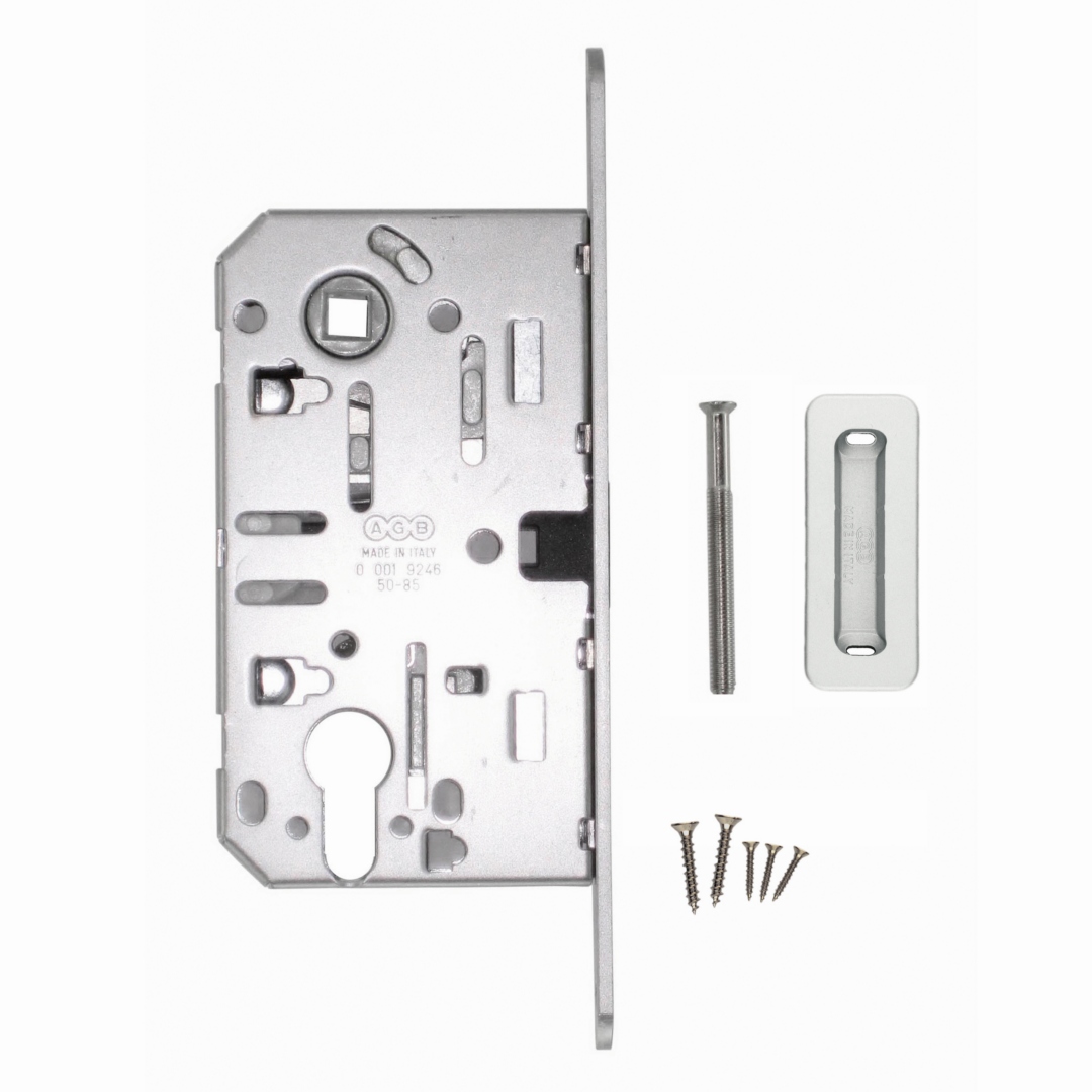 SLOT MAGNEET AGB 18MM VOORPLAAT INOX LOOK CYL 85MM+REGELBARE TEGENPLAAT
