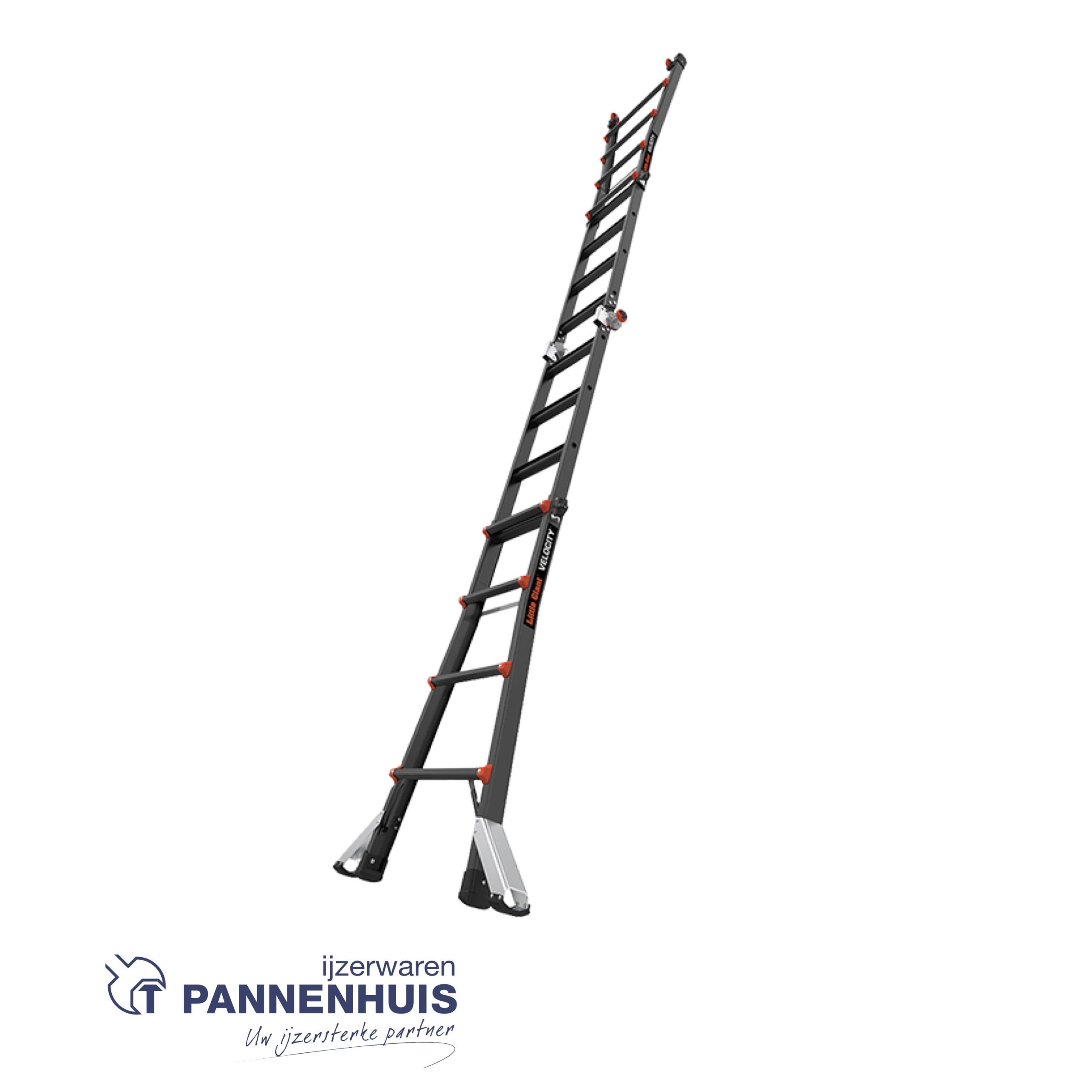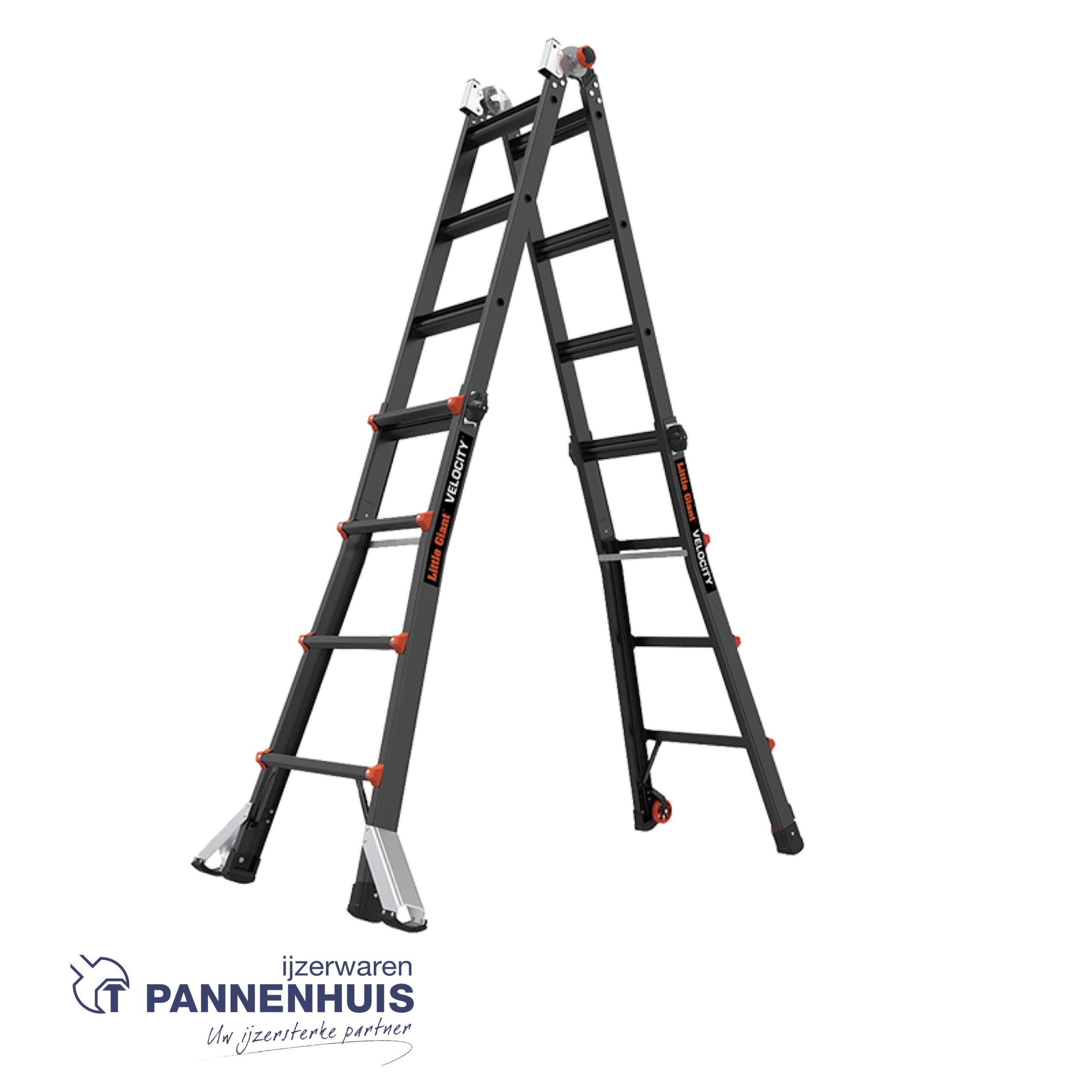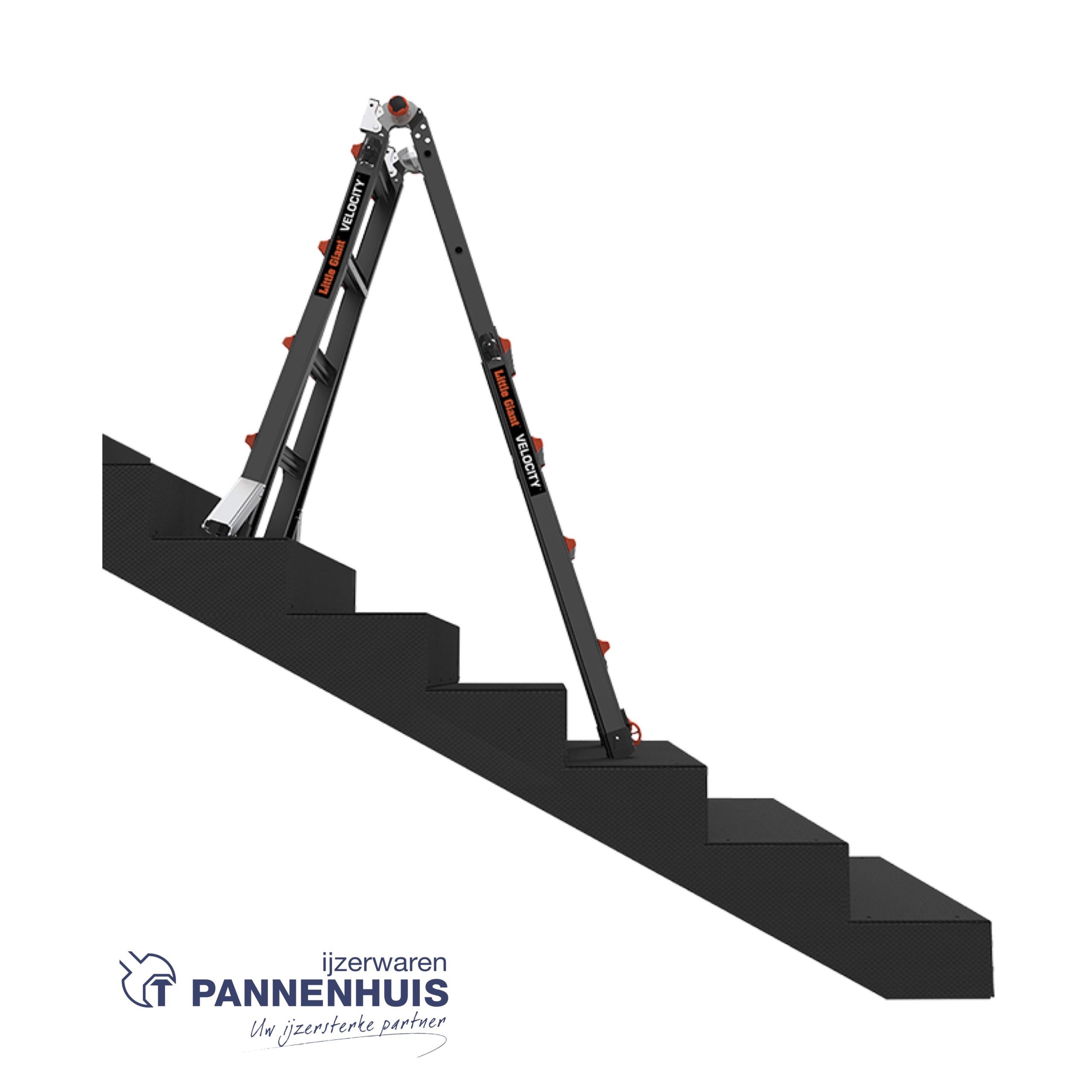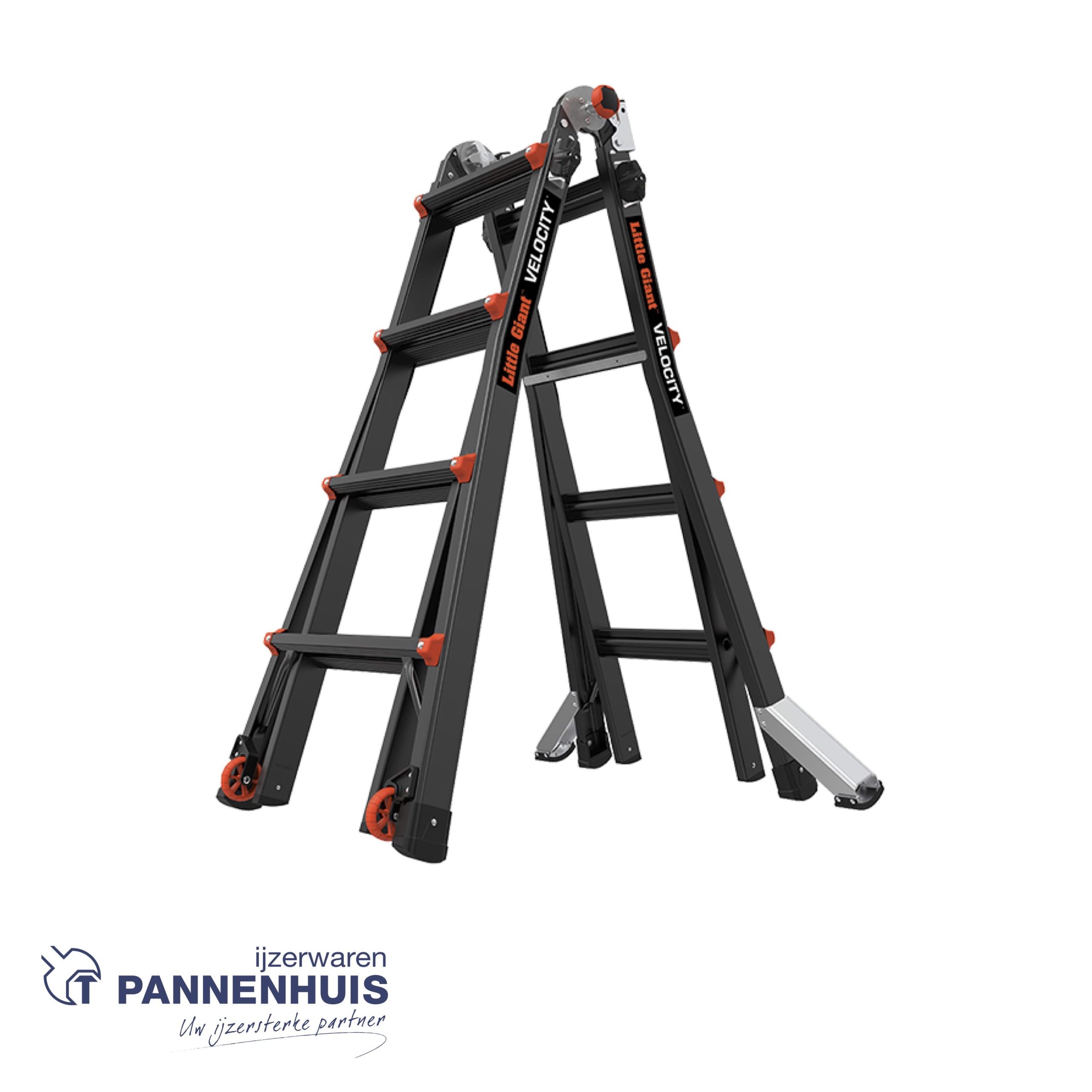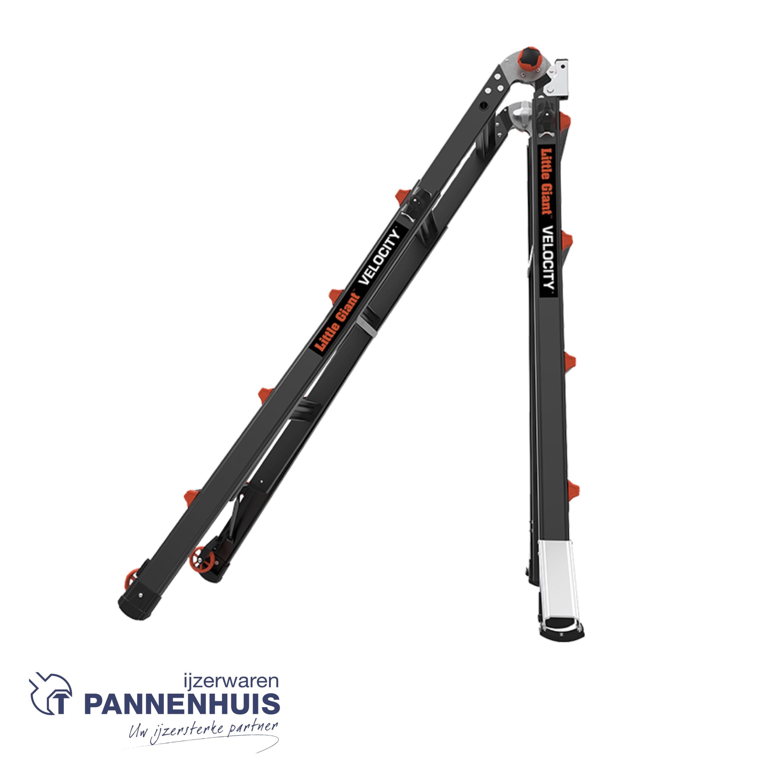 De Velocity Black Pro is een multifunctionele vouwladder. De hoogwaardige zwarte anodisatie is naast mooi ook nog eens vuilafstotend. Je kunt de vouwladder zowel in A-stand als ladderstand plaatsen. Bovendien is de ladder telescopisch instelbaar zodat je hem eenvoudig kunt gebruiken op een ongelijke ondergrond, zoals in een trapgat. Daarnaast verplaats je de vouwladder gemakkelijk door de bevestigde wielen. Met de Velocity Black Pro kun je elke professionele klus aan.
