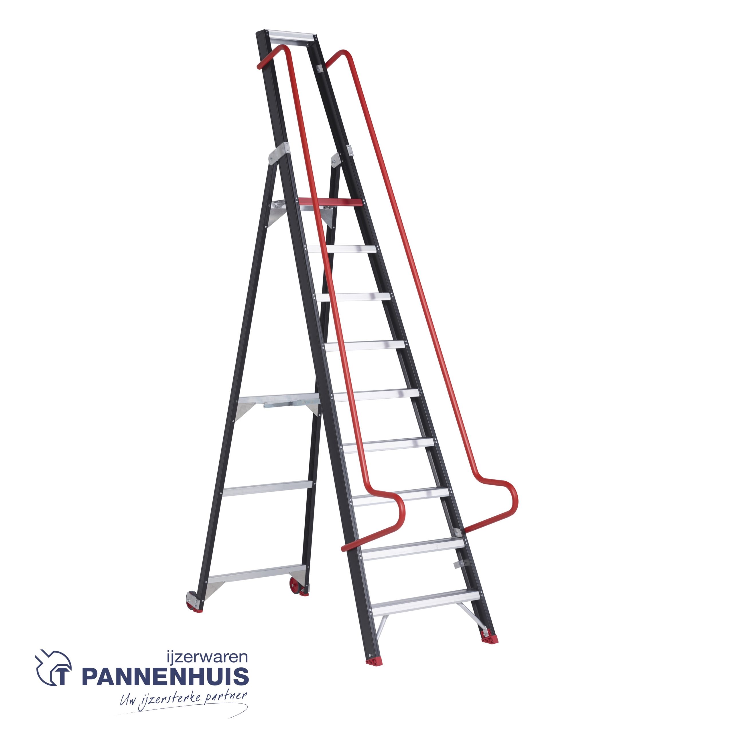 De magazijntrap heeft vaste wielen en leuningen met een natuurlijk grip om de trap eenvoudig te verplaatsen. Door de drukvaste spreidbeveiliging weet je zeker dat de trap niet ongewild inklapt. Bovendien sta je extra comfortabel met de extra hoge steunbeugel (85 cm!). Een magazijntrap op het hoogste niveau.