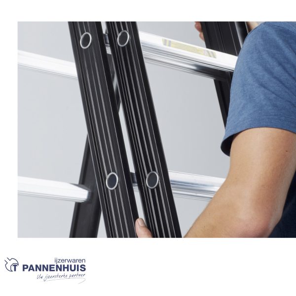 De ladder heeft extra hoge sporten (30 mm). De sporten geven je daardoor steun aan de scheenbenen. Prettig en comfortabel als je lang op de ladder staat.