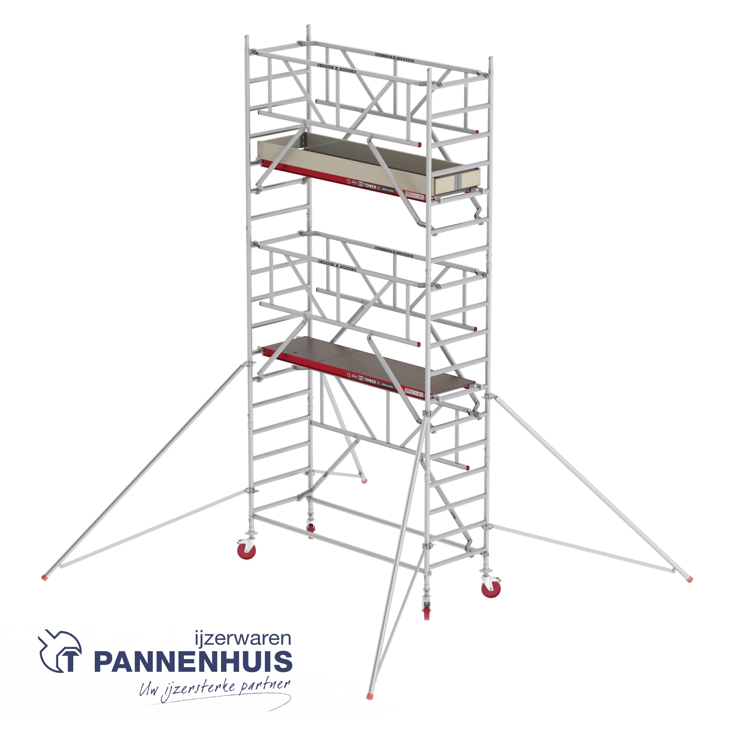 De RS TOWER 41 is een complete rolsteiger. Perfect voor de professional. De geknepen klauw-schoorbuis verbindingen maken de RS TOWER 41 sterk. De steiger brengt je tot een maximale werkhoogte van 10.20 meter hoog. Zowel binnen als buiten.