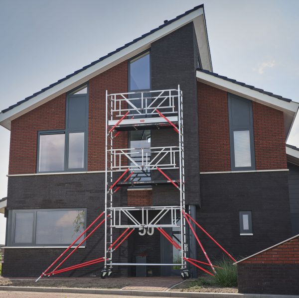 Met smalle frames van 0,75 meter en een belasting tot 250 kg per platform is deze steiger geschikt om in smalle ruimtes te plaatsen.