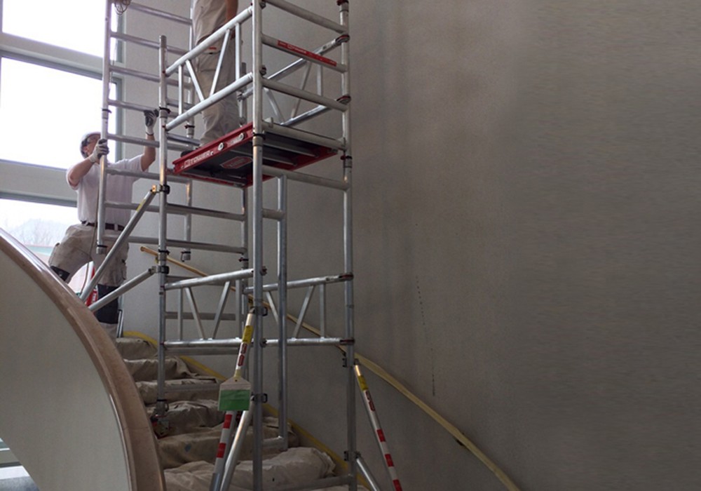 Het compacte ontwerp maakt de MiTOWER STAIRS de ideale steiger om in een smalle traphal te plaatsen.