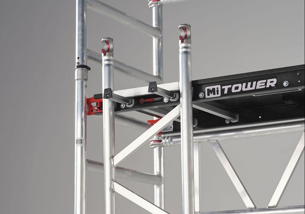 Het slimme design van de MiTOWER dwingt je om de rolsteiger veilig op te bouwen. Dwarsliggers en een uniek ophangmechanisme in het platform geven je maximale grip en maken het je extra makkelijk. Dubbele leuningschoren, een handig klauwsysteem en dubbelgeremde wielen maken de rolsteiger tot de meest stabiele in zijn soort.