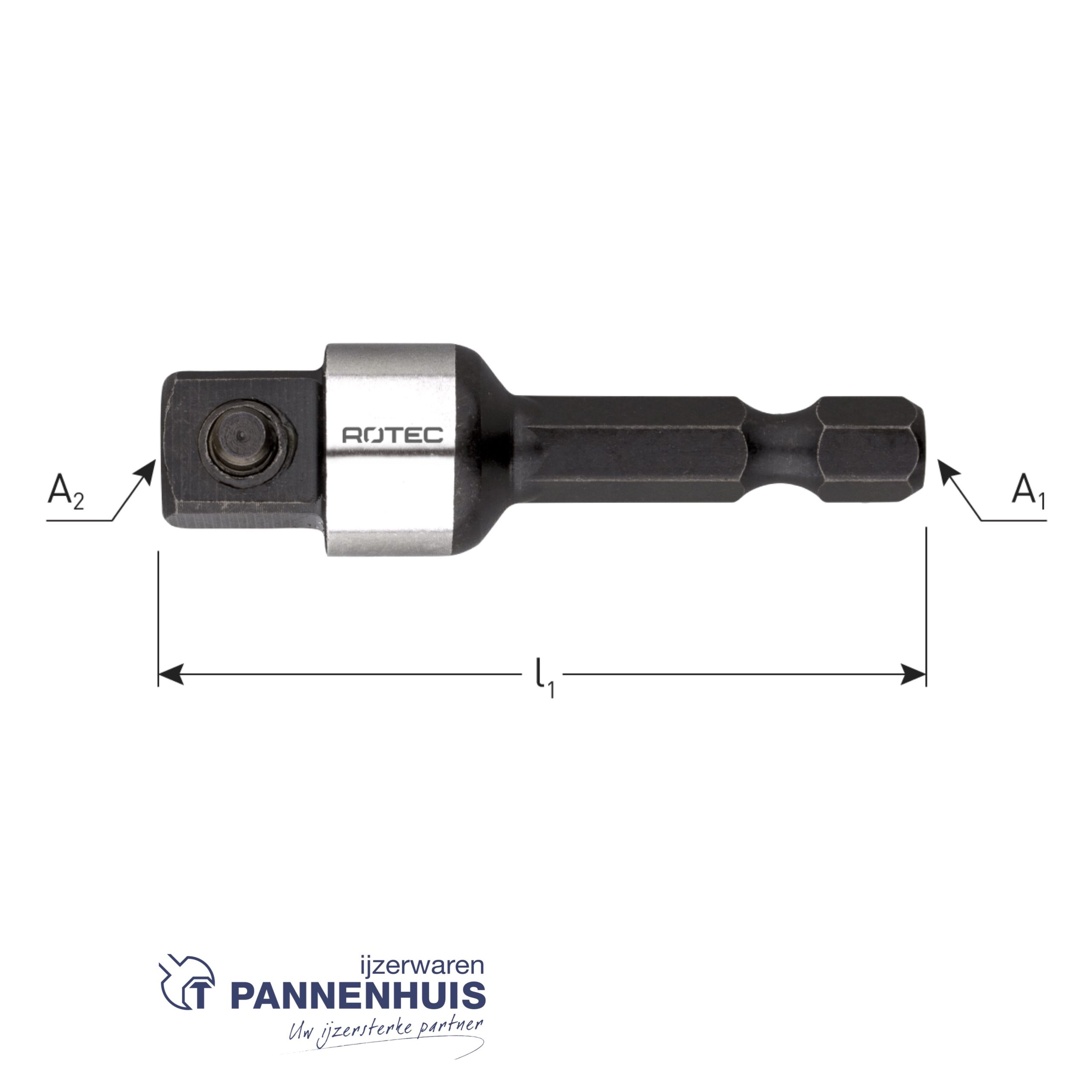 Adapter 1/4″-E6.3 > 3/8″ 4-knt. met stift