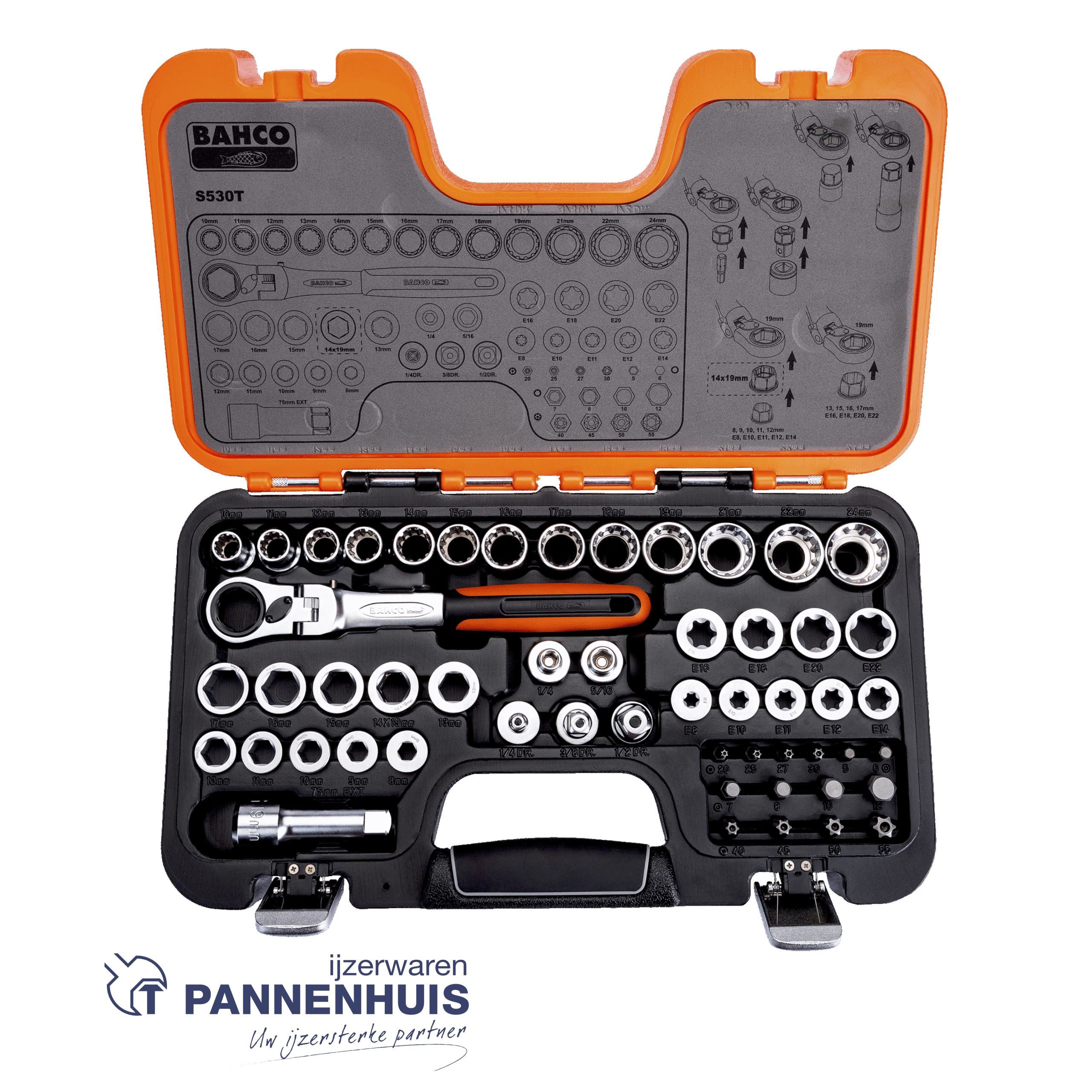 Bahco Doorsteekdoppenset scharnierende ratel 53 delig