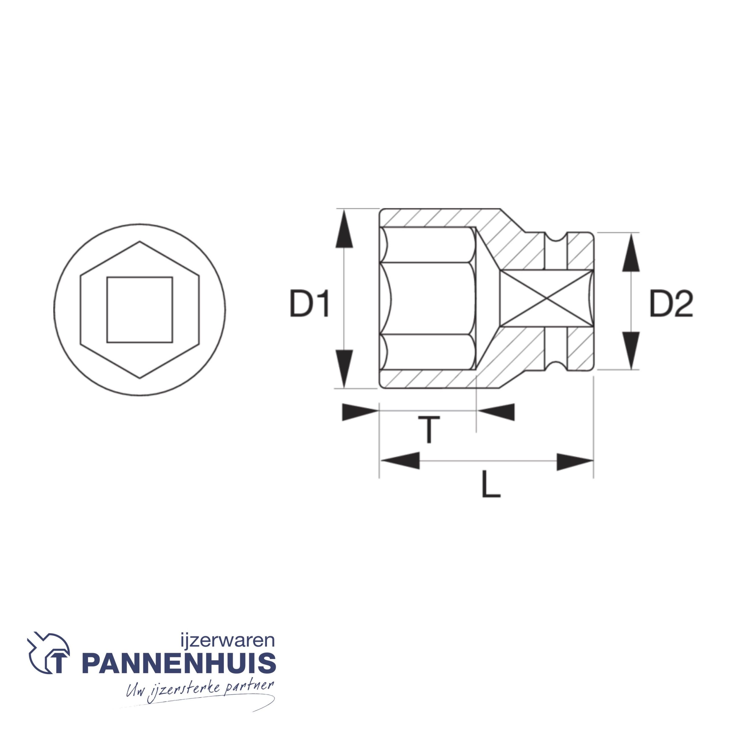Dop 1/4″, zeskant, gepolijst, 10 mm