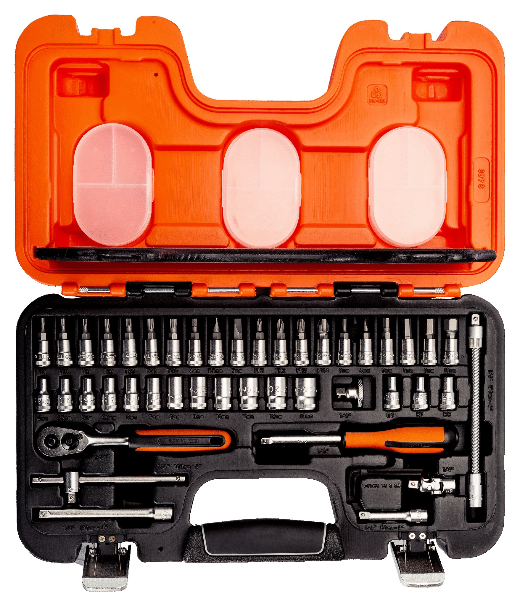 Bahco Doppenset 1/4″ peervormige ratel metrisch incl. Dopbits 46 delig