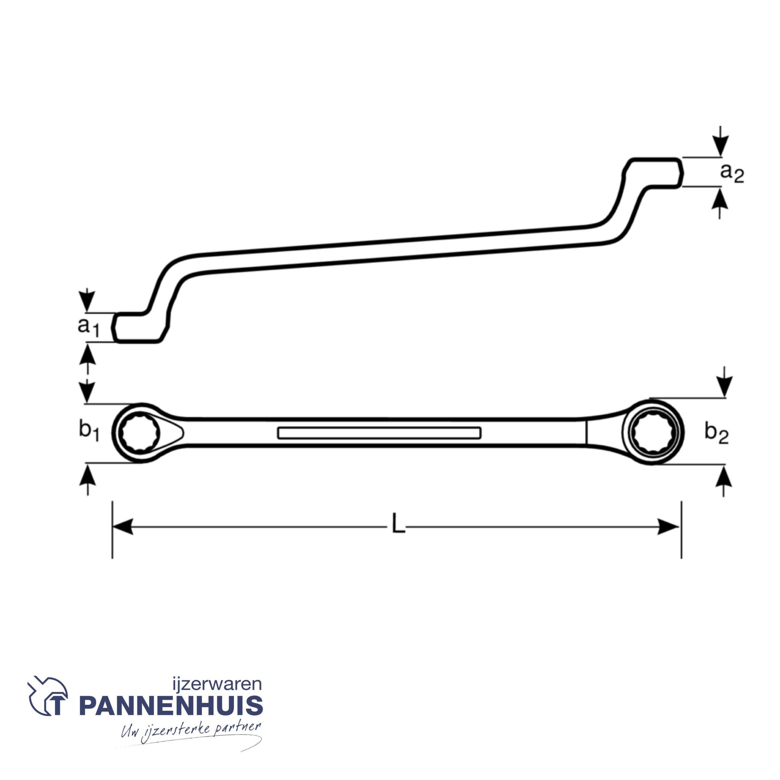 Ringsleutel, diep doorgezet, verchroomd, lengte 226 mm, 14 mm x 15 mm