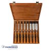 Steekbeitelset voor hout met rubber handgreep – 8-delig in houten kist