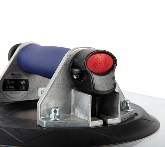 Zuiger van stabiel aluminium met hoge draagkracht voor grote en zware lasten.Geschikt voor alle vlakke en gasdichte oppervlakken. Het vacuüm ontstaat door meervoudig pompen. Door een markeringsring aan de pomphendel kan de onderdruk permanent worden gecontroleerd. De hoge kwaliteit van de zuigheffer werd bevestigd door TÜV met het GS-teken.