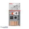 Wordt geleverd met een boor met boorpunt, dieptestop, centerpunten, gegroefde houten deuvels en houtlijm
