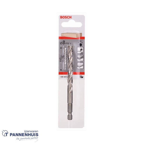 Deze boor met centreerpunt is gemaakt van geslepen, massief HSS. Door de zeskantschacht kunnen boren snel en zonder gereedschap worden vervangen.