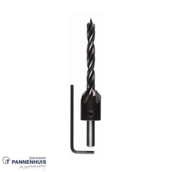 Wordt geleverd met een zeskantsleutel, een boor met centreerpunt en een opsteek verzinkboor