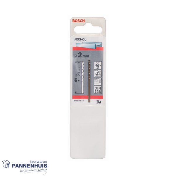 Bosch Metaalboor HSS-Co, DIN 338, 2 x 29 x 49 mm