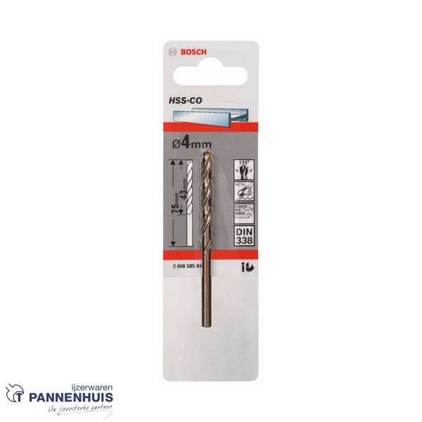 Bosch Metaalboor HSS-Co, DIN 338, 4 x 43 x 75 mm