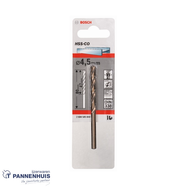 Bosch Metaalboor HSS-Co, DIN 338, 4,5 x 47 x 80 mm