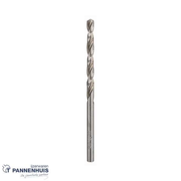 Conform DIN 338 geproduceerde boor van type N (groefhoek) met punt van 135 graden en diametertolerantie van h8.