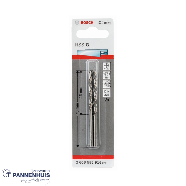 Bosch Metaalboor HSS-G, DIN 338, 4 x 43 x 75 mm 2x