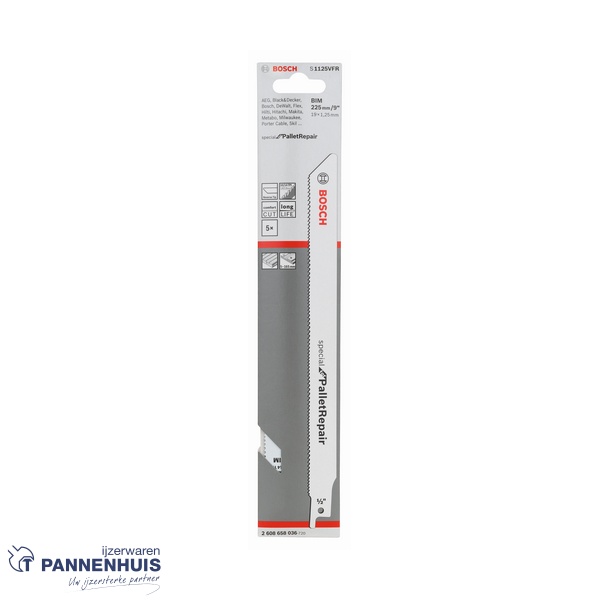 Bosch Reciprozaagblad Pallet Repair S1135VFR zaagblad, 1,25 x 19 x 225 mm, 5 stuks