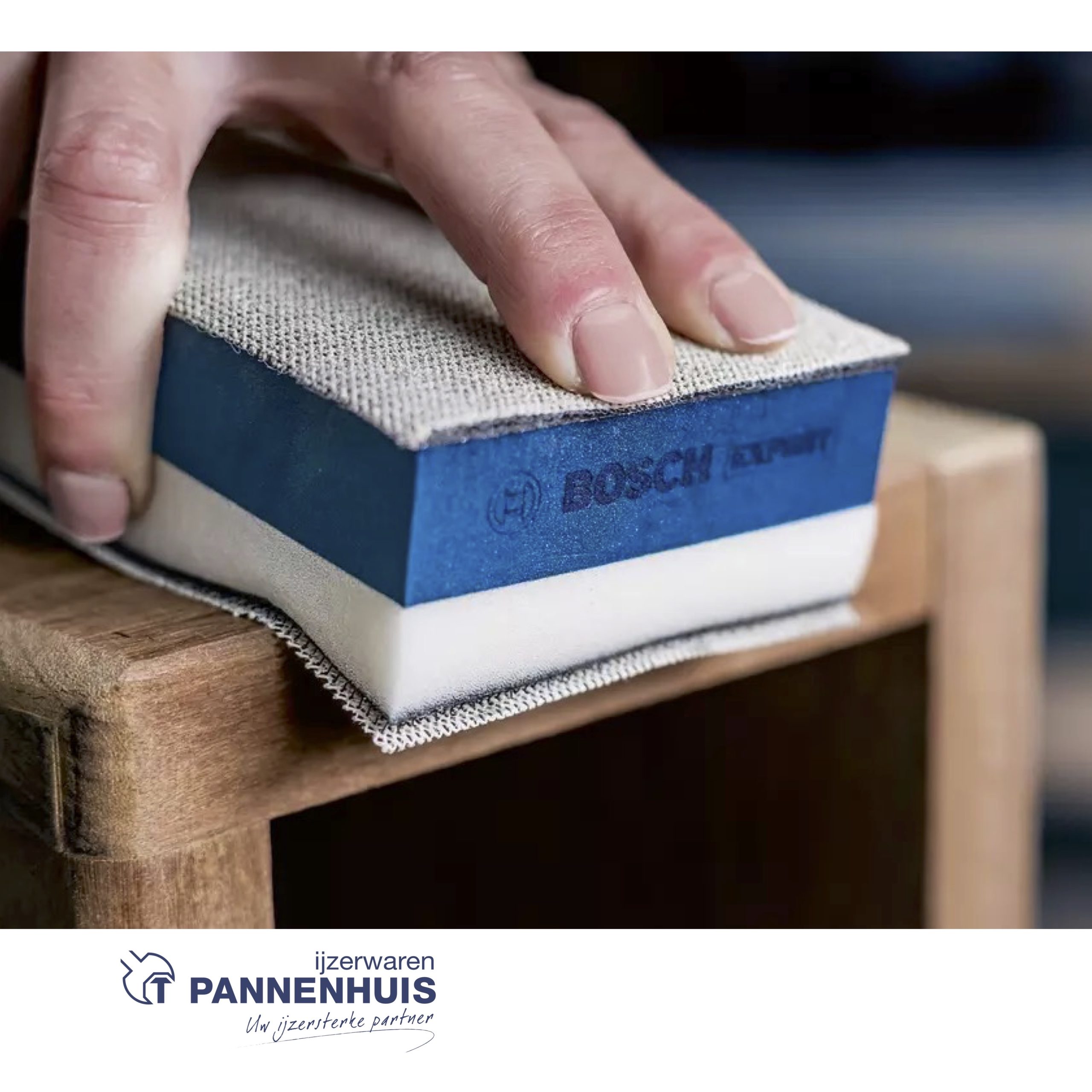 Bij het schuren van werkstukken met rechte vlakken, maar ook rondingen en randen heb je verschillende schuurblokken nodig om de juiste te hebben voor de vorm waaraan je werkt. We hebben de harde en zachte kant van dit EXPERT M480 Schuurnet 80×133 mm Schuurblok met dubbele dichtheid voor het gemak aan elkaar gelijmd. Hierdoor kun je zowel natte en droog rechte als gebogen oppervlakken en randen stofarm schuren.