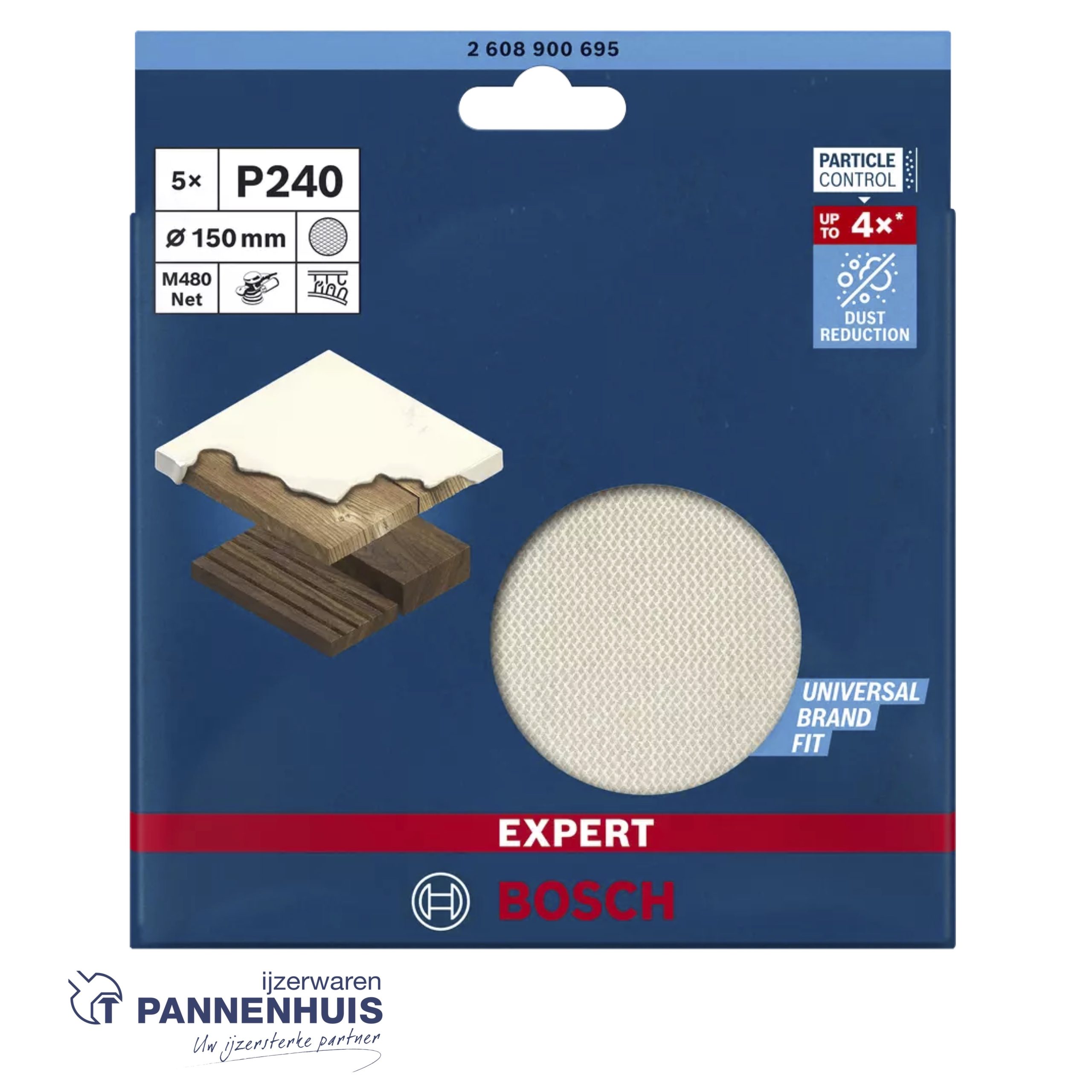 EXPERT M480 SCHUURNET VOOR EXCENTERSCHUURMACHINES 150 MM, K240 5-DELIG