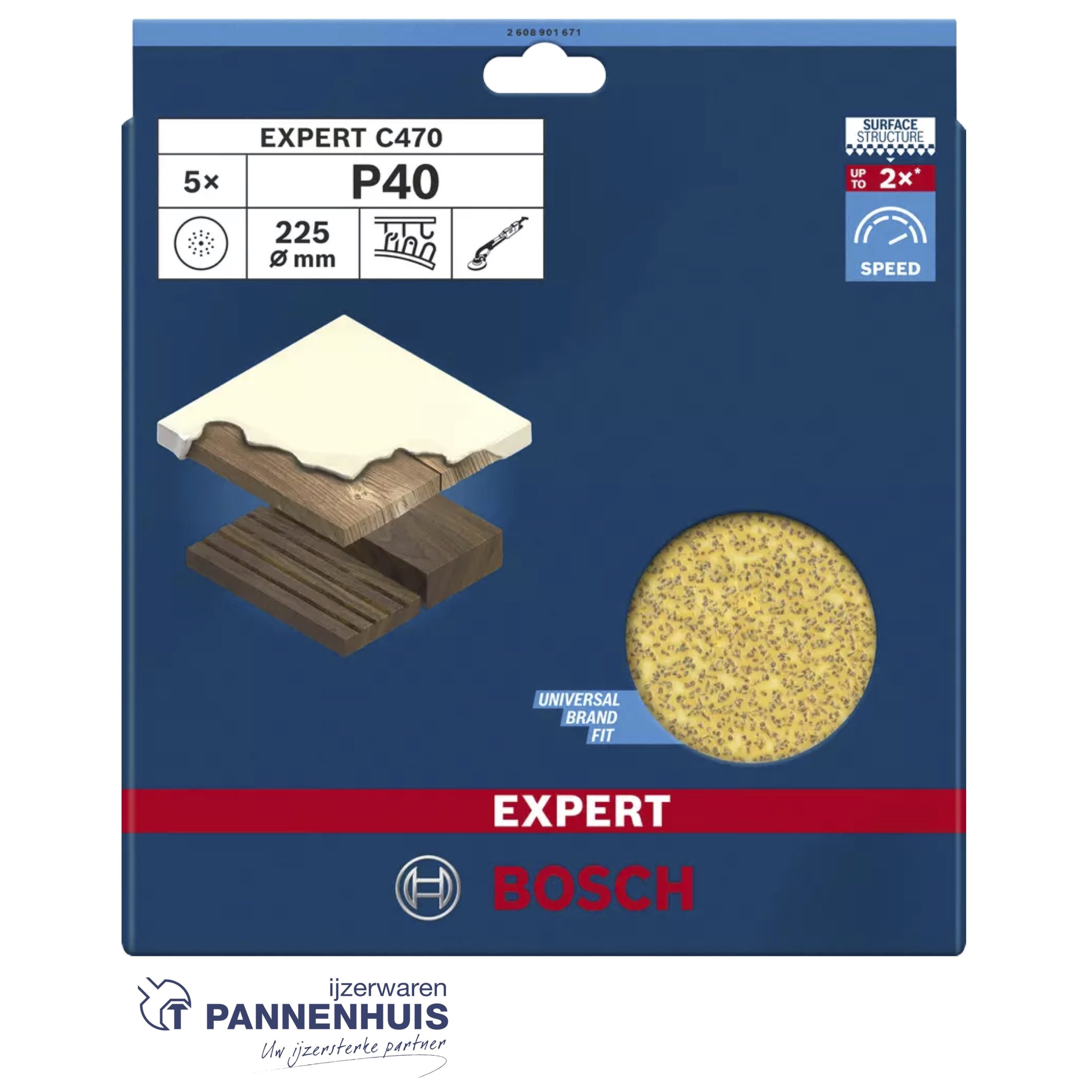EXPERT C470 SCHUURPAPIER 225 MM, K 40, 5-DELIG