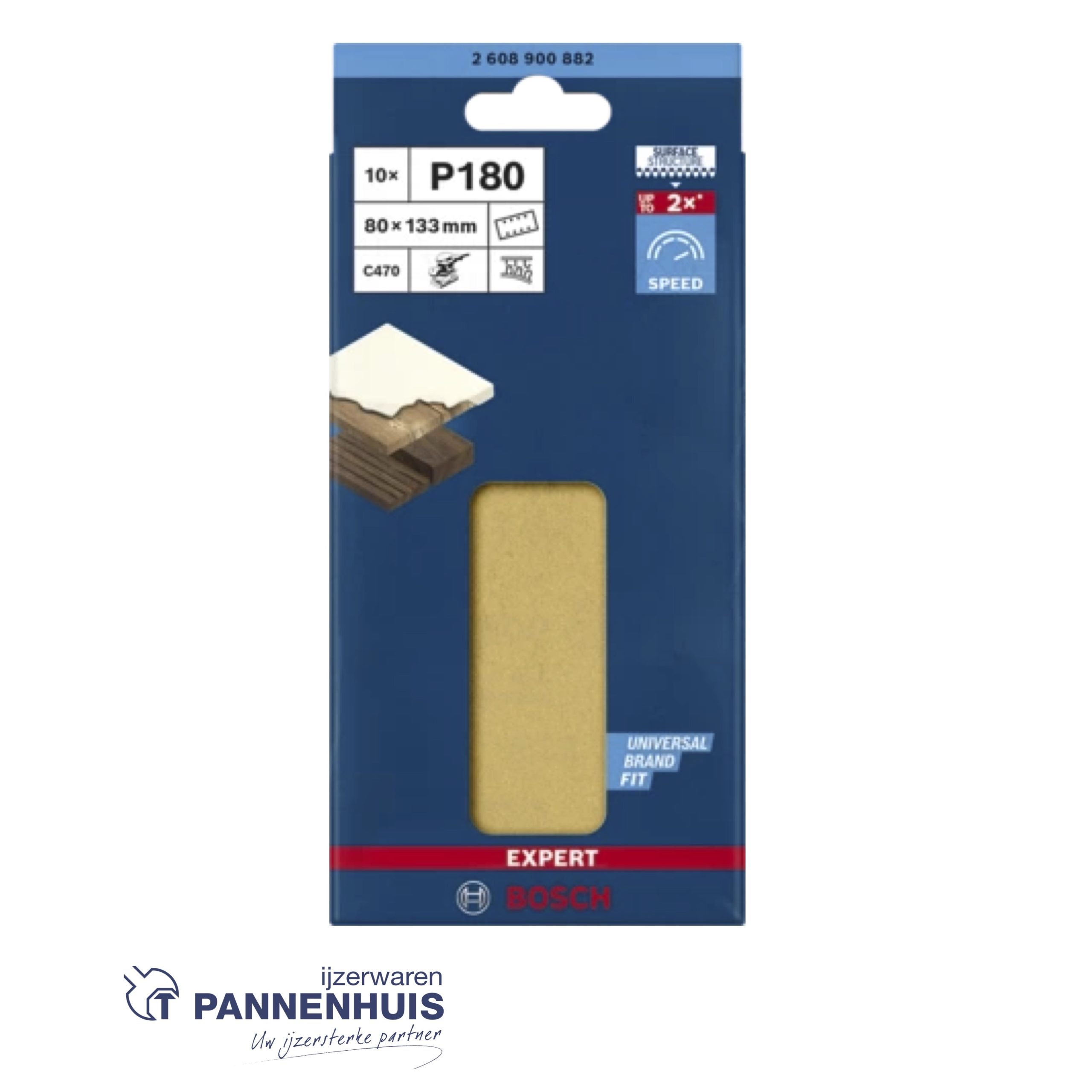 EXPERT C470 SCHUURPAPIER MET 8 GATEN VOOR EXCENTERSCHUURMACHINES 80 X 133 MM, K180 10 STUKS