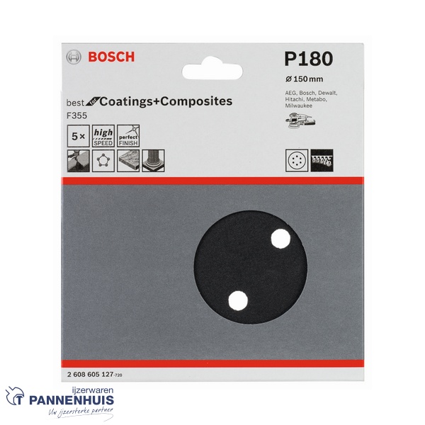 Bosch Schuurvel F355 150 mm, korrel 180, 8 gaten, 5x