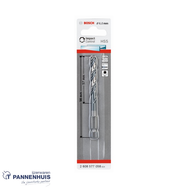 Bosch Spiraalboor HSS zeskantschacht 6 x 57 x 98 mm