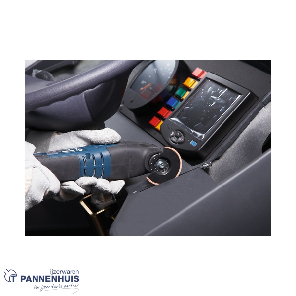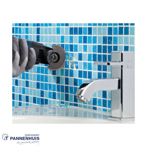Met de puntige uiteinden van het segmentzaagblad kan precies tot in hoeken worden gezaagd