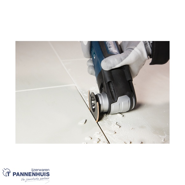 Het zaagblad is gecoat met een sterk hardmetaal met korrelgrootte 50. Dit biedt een hoge slijtvastheid en een extralange levensduur. Met de puntige uiteinden van het segmentzaagblad kan precies tot in krappe hoeken worden gezaagd, terwijl het ontwerp van het ronde zaagblad rechte zaagsneden mogelijk maakt. Met het Starlock Snap-In inzetsysteem kunnen zaagbladen binnen 3 seconden verwijderd en verwisseld worden zonder het zaagblad te hoeven aanraken. Het inzetsysteem biedt de hoogste krachtoverdracht dankzij een 3-dimensionale nauwe aansluiting tussen de machine en het accessoire.