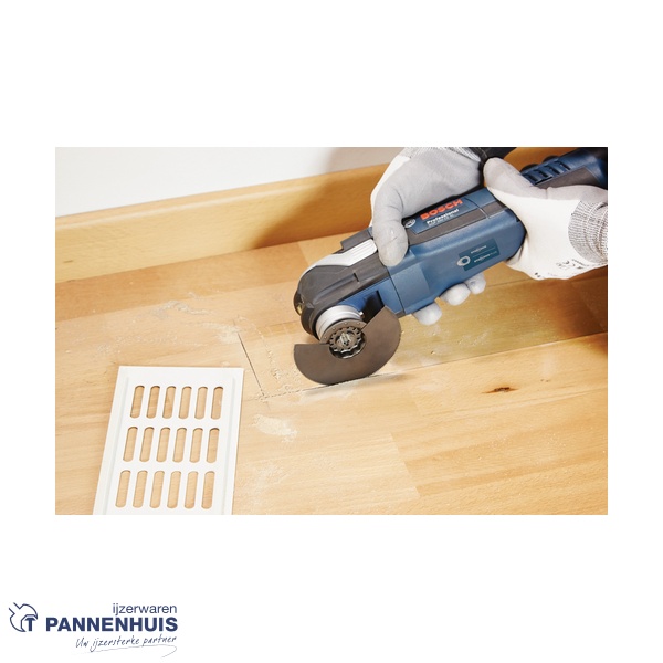 Met de puntige uiteinden van het segmentzaagblad kan precies tot in krappe hoeken worden gezaagd