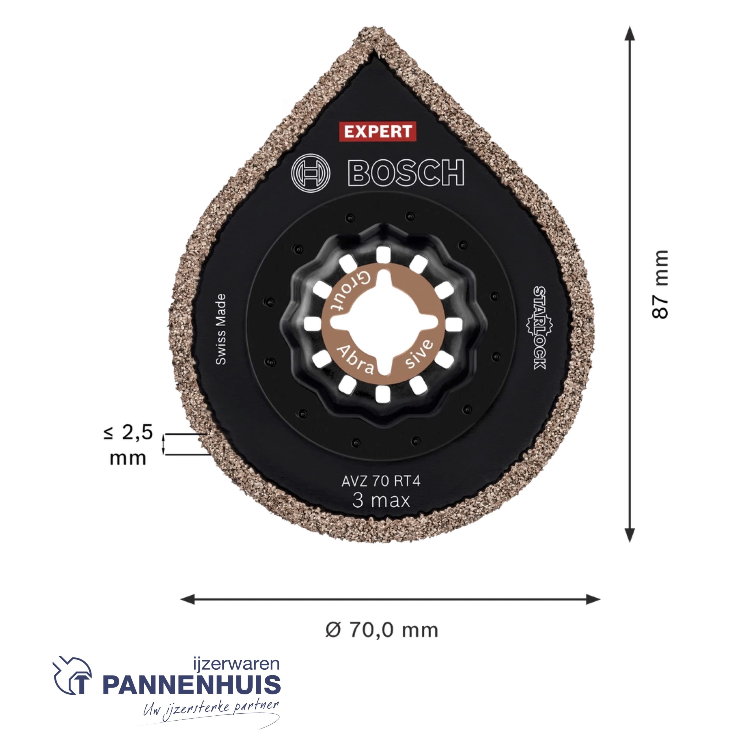 Dit is het enige oscillerende multitoolzaagblad dat je nodig hebt bij het werken met tegels: een bedrieglijk eenvoudig ontwerp dat het werk gemakkelijker maakt en maximale efficiëntie garandeert. Met het Bosch EXPERT 3 max multitoolzaagblad AVZ 70 RT4 heb je altijd het juiste Starlock accessoire bij de hand.