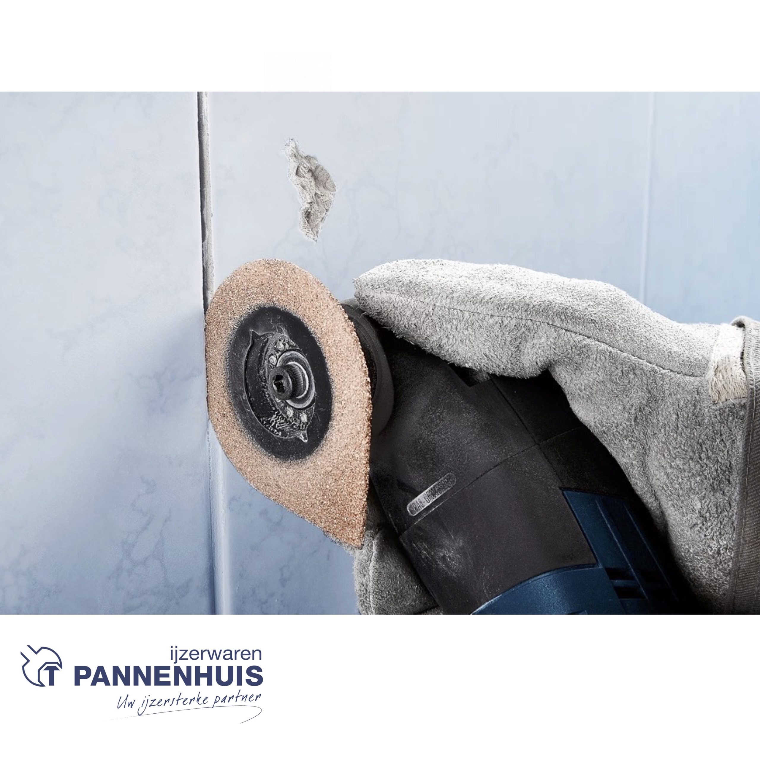 Een beschadigde tegel verwijderen zonder de hele muur opnieuw te doen, is een van de grote voordelen van de Starlock multitool. En met de EXPERT 3 max wordt het nog eenvoudiger. Met dit slimme zaagblad kun je oude mortel verwijderen, de krapste hoeken bereiken en mortel wegschuren.