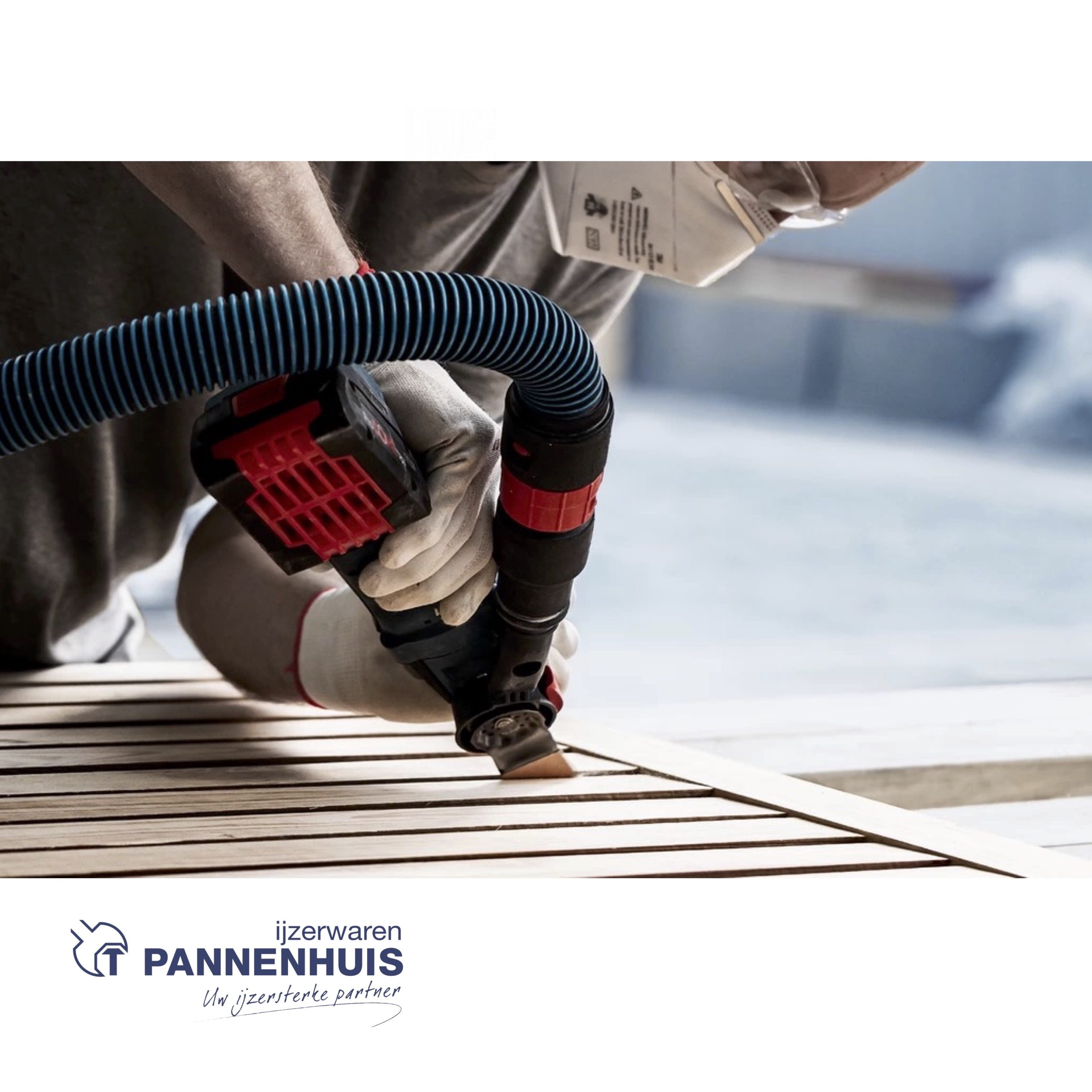 Krappe openingen in terrasplanken, luiken of oude trappen zijn erg moeilijk met de hand te schuren zijn, meestal krijg je een splinter in je vingers. Met de EXPERT schuurvinger is dit soort schuurwerk eenvoudig: het dunne, spitse zaagblad past in de kleinste ruimtes en schuurt snel en effectief met zijn hoogwaardige hardmetalen korrel.