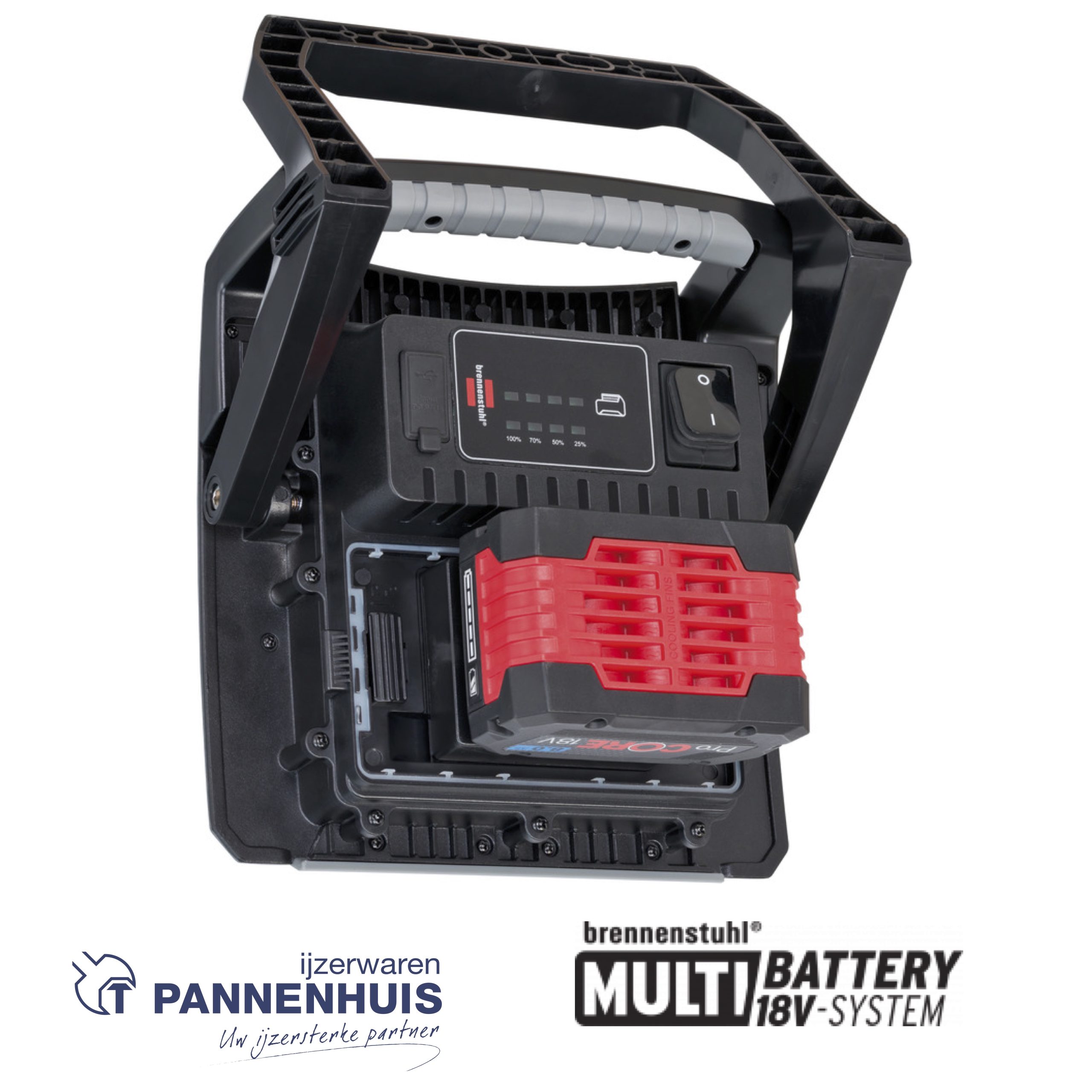 LED-Werklamp 40 W met brennenstuhl® Multi Accu 18V systeem maakt het mogelijk het accusysteem van uw keuze te gebruiken – een technologische innovatie op het gebied van werkverlichting