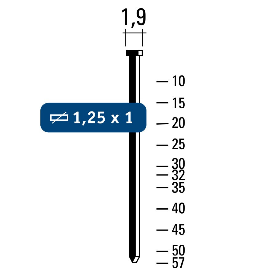 met 35000 minibrads, lengte 15 – 20 – 25 – 30 – 40 mm