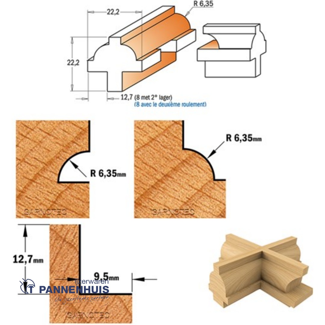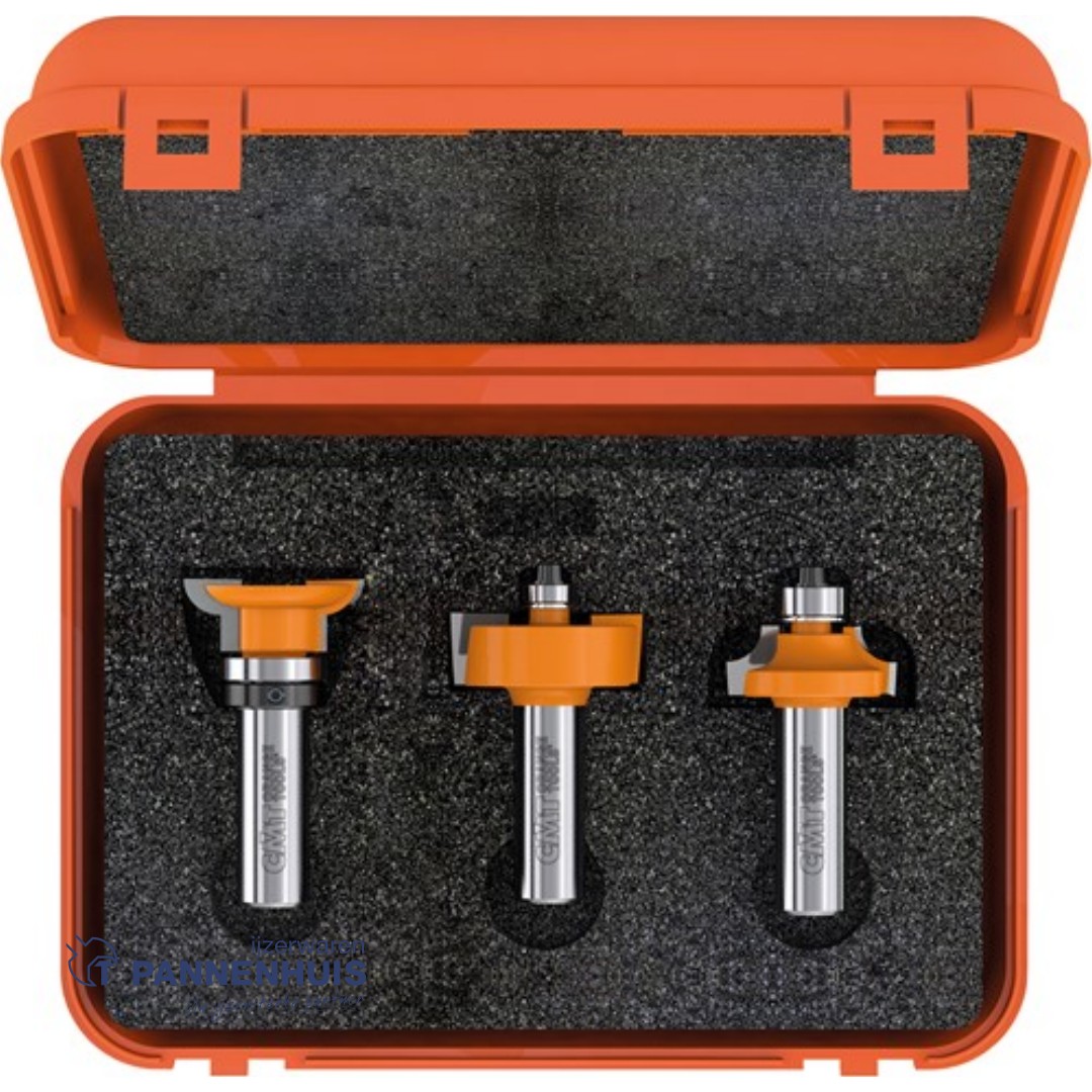 Met deze driedelige freesset maakt u prachtige kruisroedenverbindingen in dressoirs, kasten en keukendeuren. De set bestaat uit een profielfrees, een contraprofielfrees en een sponningfrees. Omdat de frezen zijn voorzien van een geleidelager, kunnen ook gebogen raamwerken worden gemaakt. Zoals u gewend bent, wordt ook deze set verpakt in een prachtige oranje opbergkoffer.