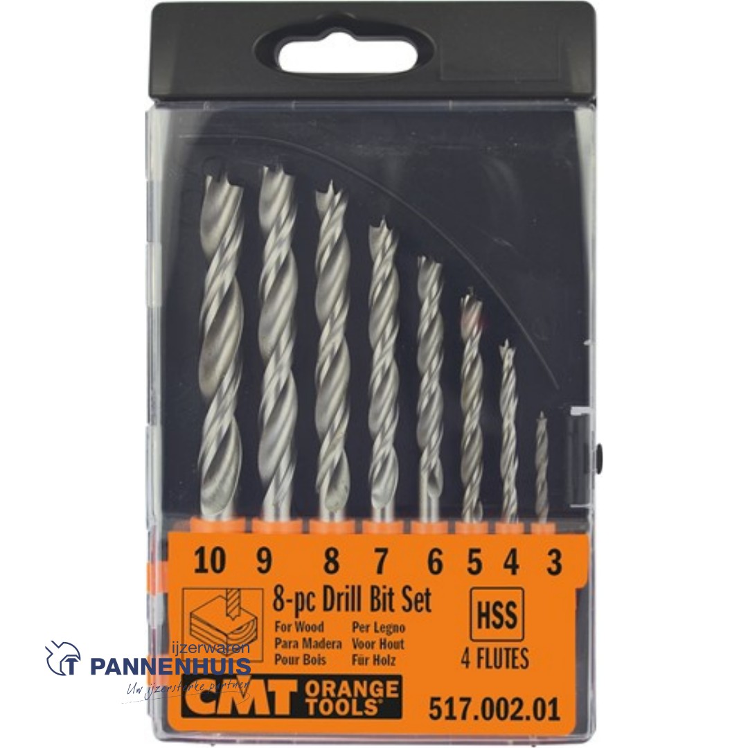 CMT 8-delige spiraalborenset (dubbele spiraal) D=3 4 5 6 7 8 9 10mm Z2 RH (rechtsdraaiend) HSS