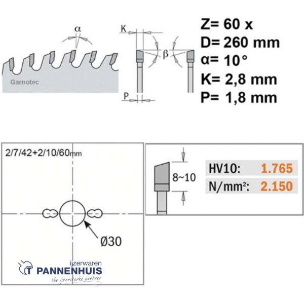 CMT Afkortcirkelzaag HW 260x30x2,8 Z60 Massieve houtsoorten