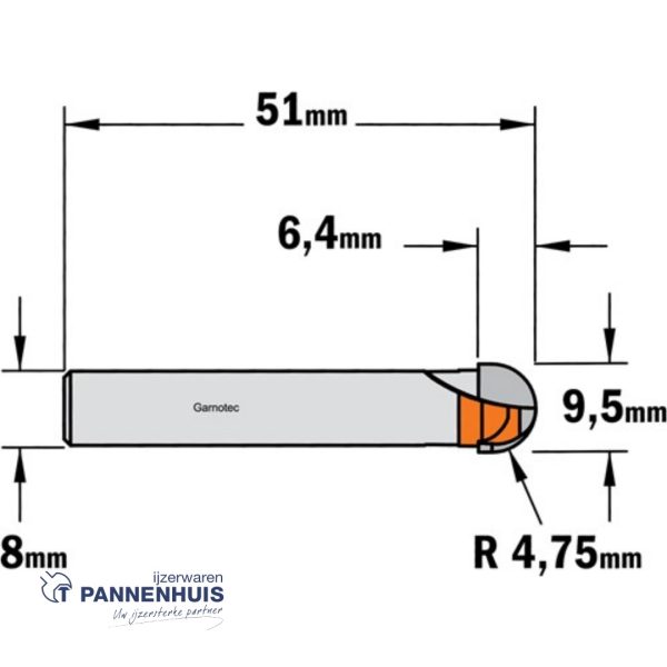 CMT Bolle radiusfrees HW D=9,5 x 6.4mm R=4,75 L=50,8 S=8 Z2