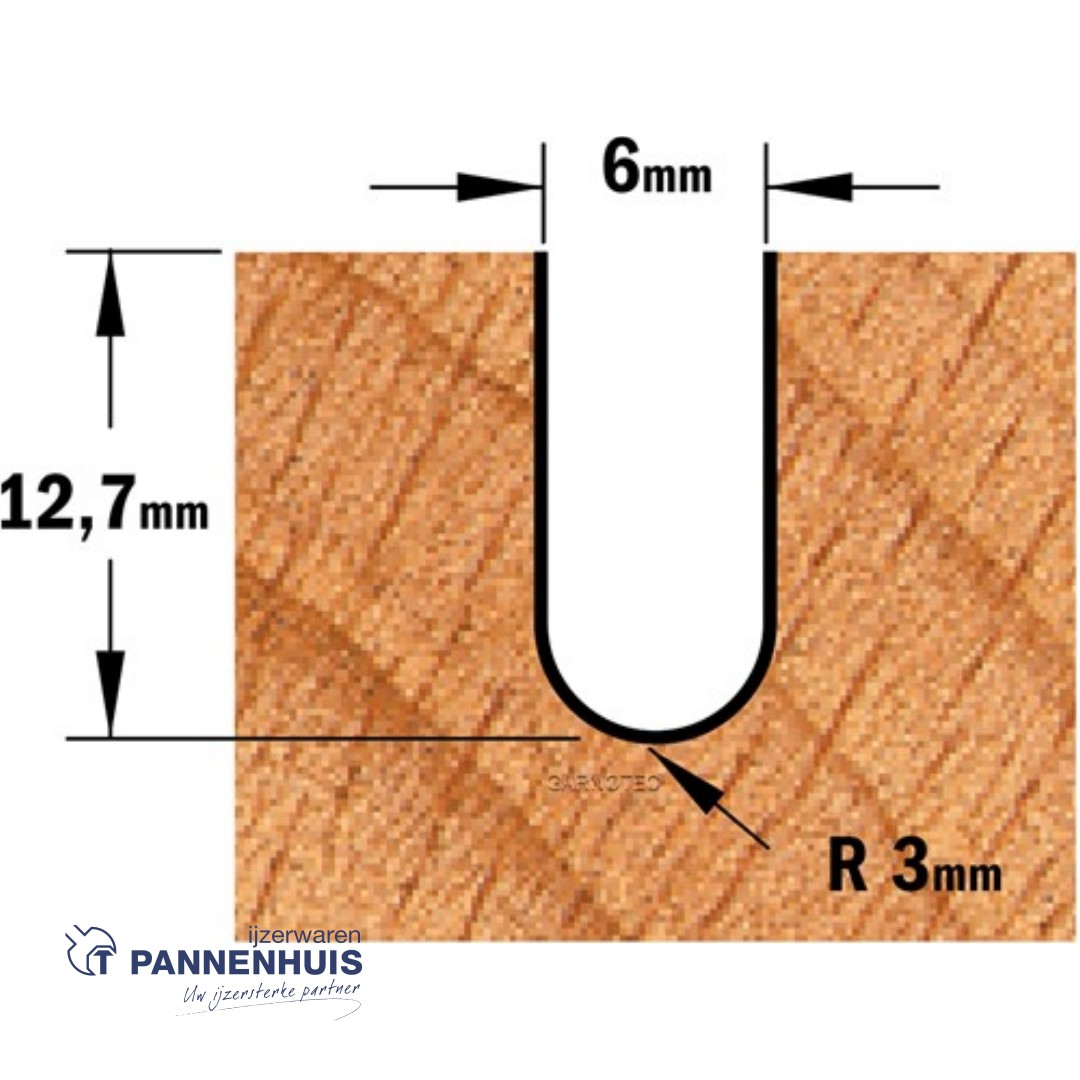 Tip: Om splintervrij te werken, is het verstandig om diepe groeven in meerdere keren te frezen. Begin met een ondiepe groef en ga geleidelijk aan dieper.
