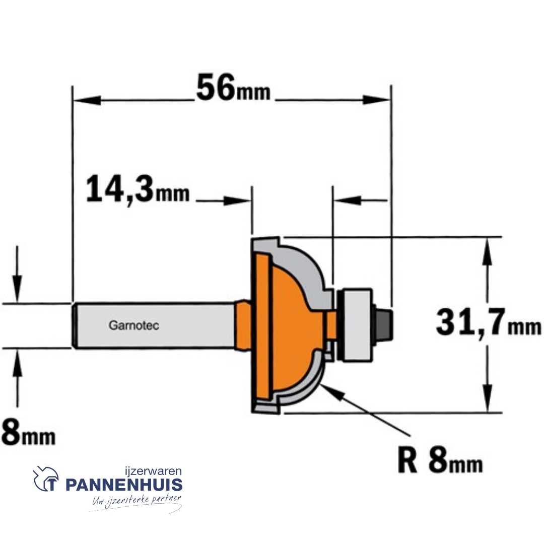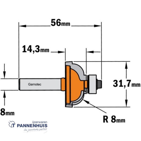 CMT Bolle radiusfrees met kogellager HW D=31,7 x 14,3mm R=8 L=55 S=8 Z2