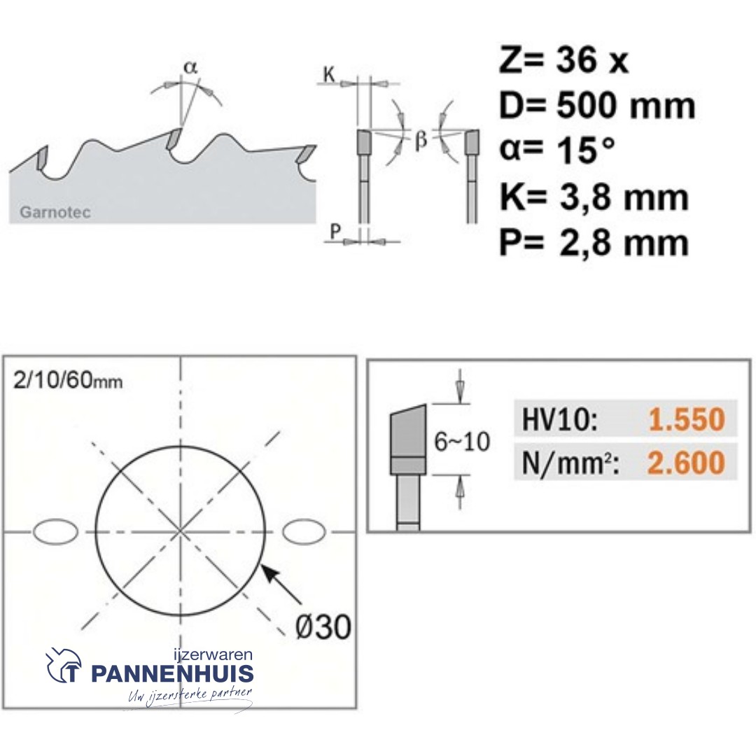 CMT Bouwcirkelzaag HW 500x30x3,8 Z36 Hout met spijkers