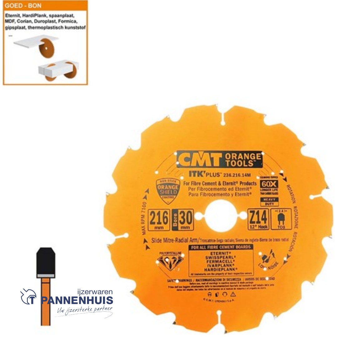 CMT Cirkelzaag extreem HW 216x30x2,2 Z14 Sidings, Cementvezel, Gipsplaat