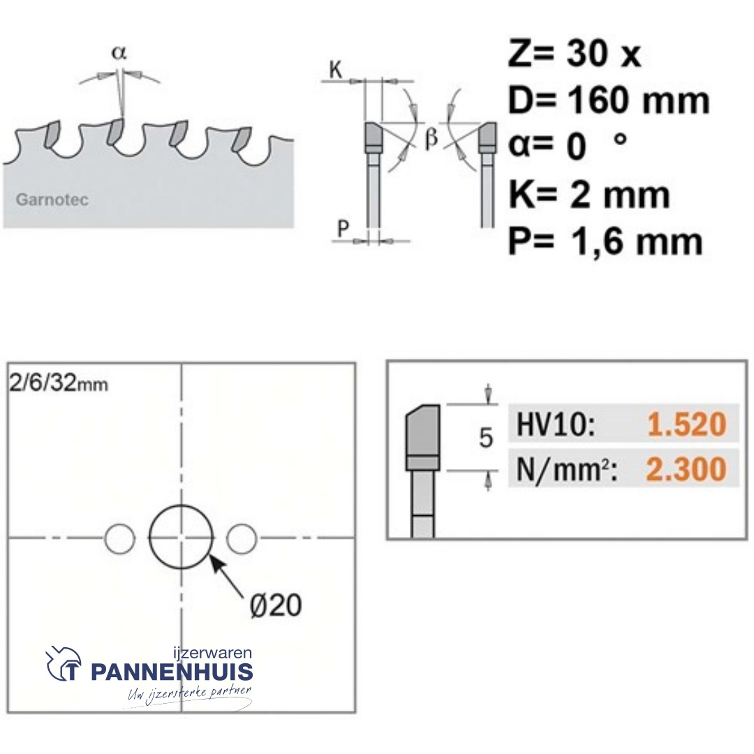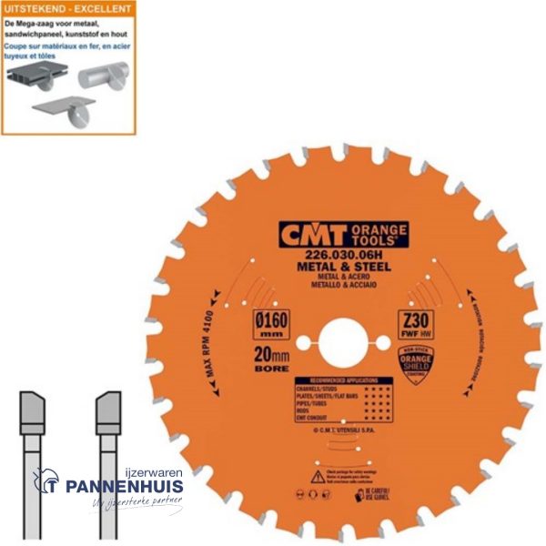 CMT Cirkelzaag HW 160x20x2 Z30 Ferro- en non-ferro metalen, sandwich panelen